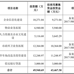 12月3日,新大正于深交所中小板上市,发行股份数量为1791.07万股,发行价格为26.76元/股,保荐机构为长江证券。新大正上市募集资金总额为4.79亿元,扣除发行费用后,募集资金净额为4.35亿元,分别用于企业信息化建设、物业业务拓展、人力资源及企业文化建设、市政环卫业务拓展、停车场改造及投资建设、偿还银行贷款。