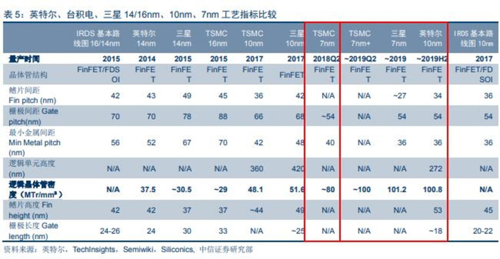 此处需要说明的是,最小金属间距意味着容纳更多的晶体管,这也是上述为何业内认为英特尔10nm等于三星 7nm和台积电 7nm+(2019 EUV)(略高于台积电初代 7nm))的主要原因。