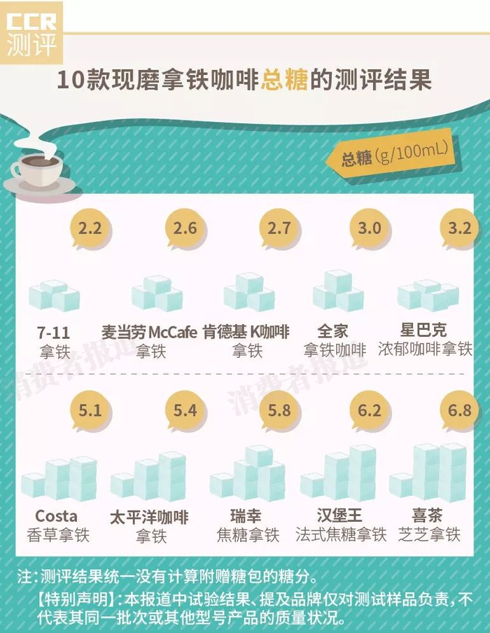而且,本次测评均没有将所赠送糖包的含糖量计算在内,因此10款现磨拿铁咖啡的含糖量实际要低于饮用时额外添加糖包的情况。