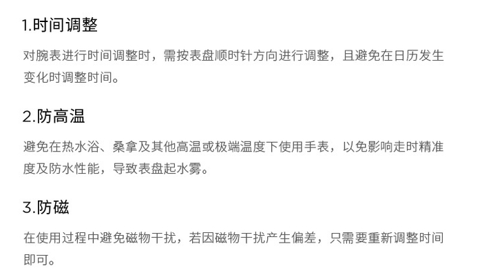 手表毕竟是精细化的物件,想要用得久,在使用的过程中还是要多加注意、小心呵护。
