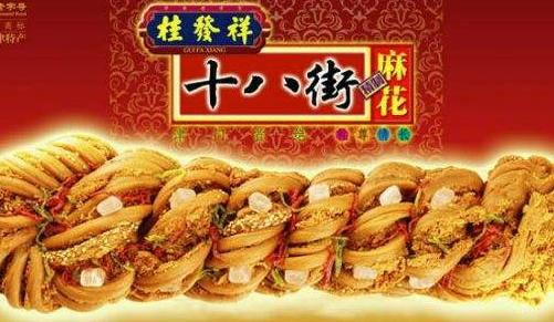 一九二七年,天津卫海河西侧新开张了一间麻花铺,掌柜刘老八,字号“桂发祥”,寓意为“桂子飘香,发愤图强,吉祥如意”。因店铺地处东楼十八街,故得名“桂发祥十八街麻花”。精于点心制作的刘老八,久经尝试,率先研究出了将什锦馅料融于麻花之中,使产品呈现条酥而不懈,馅溢而不散,均匀饱满,紧致有序,造型周正,金黄通透的完美形态,产品一经问世,便以酥脆香甜的口感,久放不绵的特点,赢得了上至达官显贵、下至布衣百姓的推崇,成为津门乃至北方美食的翘楚。今天,桂发祥十八街麻花已成为津门美食名片,并作为中华传统经典美食走向世界各地。