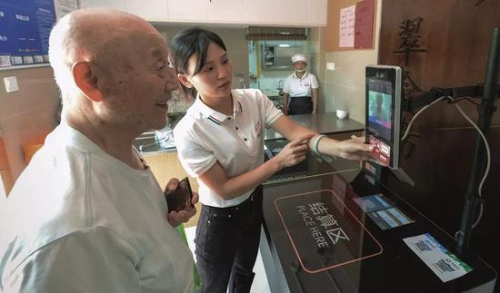 2019年8月27日,杭州翠苑三区老年食堂内,实行刷脸支付就餐。图/视觉中国
