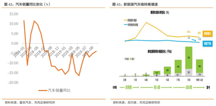 市场空间:汽车销量修复+新能源车销量增长,汽车电子走量。2018年汽车销量呈下滑趋势,2019年6月以后,汽车销量降幅收窄,预计汽车出货量将得到一定修复。与普通汽车相比,新能源汽车中的汽车电子占比更高,混合电动及纯电动车占比高达47-65%,长期看来,新能源汽车持续导入维持高增速,2018年销量达到1017千台,(将近2017年销量两倍)。双重刺激下,汽车电子量的增长明显。