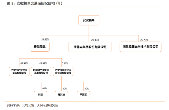 19年10月11号欧菲光成立全资子公司安徽精卓,据公告安徽精卓主要开展触摸屏和触控显示全贴合模组等触控显示相关业务,预告后续将适时引入战略投资者。