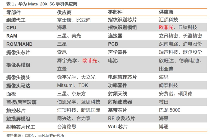 具体看两大手机寡头华为、苹果供应情况: