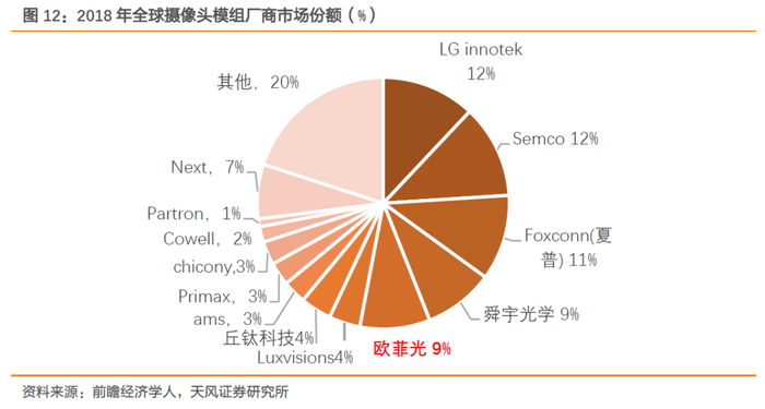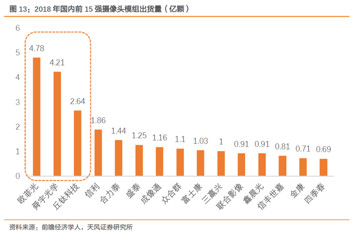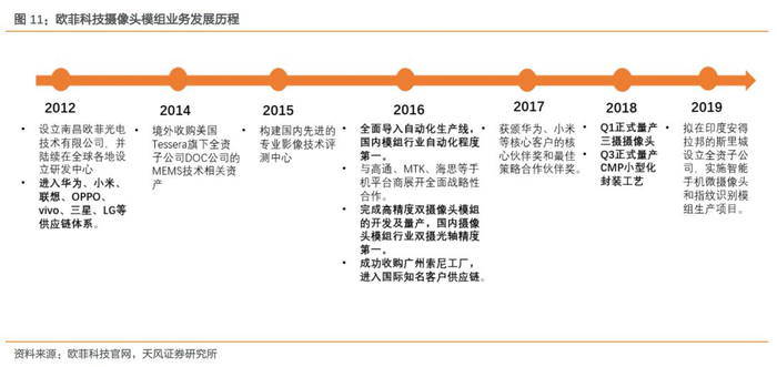 旗下客户方面:作为国内三大摄像头模组企业,欧菲光、舜宇、丘钛已深度绑定国内手机主流厂商华米OV,未来将受益于手机终端行业集中化趋势,通过客户市场份额的快速增长实现摄像头模组业务的扩张。