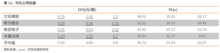 华为:国产替代化加速,公司供应链地位提高。受美国禁令影响,为保证自身供应链安全,华为正逐步重塑供应链,加速国产替代化,例如在功率放大器(PA)方面,华为正逐步将原美国供应商替代为台商+日商村田。处于华为摄像头模组供应链中的公司将有望受益于华为供应链“去美国化”,加大自身在华为供应链话语权和份额,从而促进公司业务扩张。