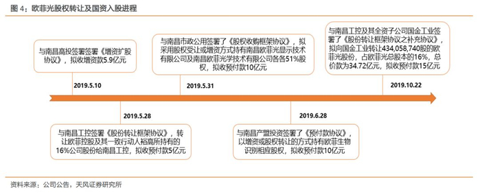 股权转让+国资入股推进顺利,资金压力进一步缓解。19年5月,南昌工业控股集团及其指定机构受让欧菲控股及一致行动人裕高转让其持有的公司16%的股份,同时承诺受让股份后三年内与欧菲控股及裕高保持一致行动,保证公司控制经营权,目前已支付5亿元的股份转让预付款。随后公司加速积极引入国资入股,截止至19年11月,公司已经收到南昌高投建筑、市政公用投资、产盟投资及南昌国金等入资方合计40.9亿元受让/增资预付款。此外,公司于11月作价18亿元出售51.88%安徽精卓股权,且受让方安徽精卓承诺于2年内偿清对公司4.03亿负债,公司财务结构进一步优化,流动性加强。
