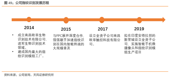 4. 优越的指纹模组量产能力,积极卡位屏下指纹