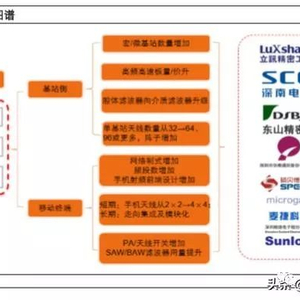 因此根据我们的测算,基站端射频侧(包含 AAU 方案和 RRU+天线方案)全球 PCB 市场空间将达 543 亿元,较 4G 提升 5 倍。如再考虑 OTN 相关设备所用的背板单板的量价齐升,以及小基站覆盖 带来的增量,5G 给 PCB 带来的市场空间将超千亿。建议关注通信板龙头深南电路和国内基站滤波 器领先企业东山精密、武汉凡谷。