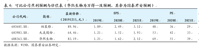 进口小众美妆爆发,珀莱雅携手胜肽家族强势进军功能性护肤市场。2018年双11天猫国际销售前三的品牌均为功能性护肤品牌,天猫国际预计2020年将新增超过100个小众美妆品牌,并撬动近百亿增量市场。珀莱雅牵手西班牙胜肽家族旗下圣瑰兰品牌,强势切入抗衰老护肤市场,凭借原料商优势,其产品功效显著、性价比优势凸显。叠加珀莱雅的渠道和运营优势,圣瑰兰中国市场成长潜力巨大。