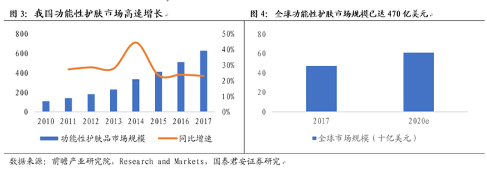 2、 功能性护肤品极具潜力,携手胜肽家族强势发力