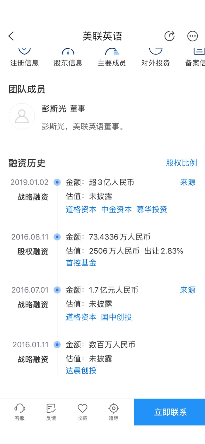 今年1月,美联英语通过官网宣布融资3亿元的消息,除了老股东道格的增持,还吸引了中金资本和清华大学旗下的慕华基金。那么,这笔钱是否真正到位了呢?