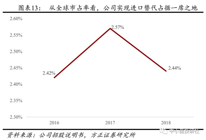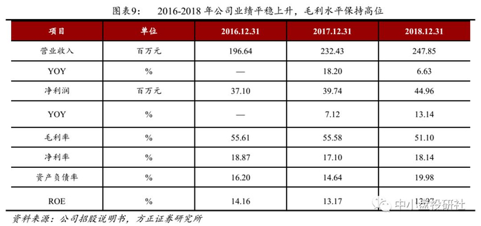 近3年业绩稳步增长,高行业壁垒铸就公司产品高毛利水平。根据公司招股说明书披露,2016-2018年公司分别实现营业收入1.97/2.32/2.48亿元,实现归母净利润0.37/0.40/0.45亿元,公司业绩稳步上升。由于公司从事的半导体材料研发及产业化具有很高的技术、人才、客户壁垒,公司毛利保持在较高水平。2016-2018年公司综合毛利水平分别为55.61%、55.58%和51.10%。2018年公司综合毛利水平较2017年下降主要系公司产品收入结构变化,同时为应对下游客户成本控制需求及竞争对手价格挑战,对稳定销售多年的部分产品进行选择性降价,以维持公司产品的长期竞争优势。
