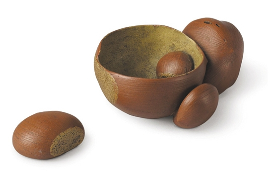 清康熙 鹤村(陈鸣远)作宜兴紫砂像生板栗及栗子杯共两件 佳士得供图