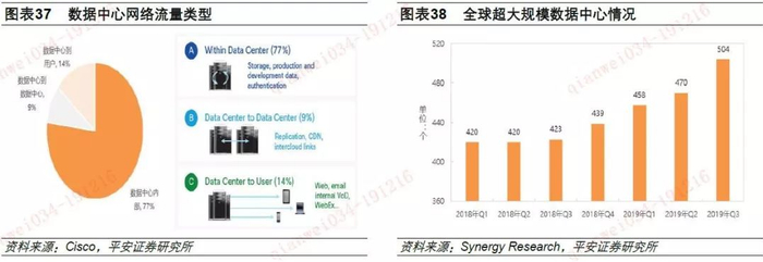 根据市场研究机构Synergy Research发布的市场研究数据:截止2019年Q3,全球超大规模数据中心达到了504个,同比增长接近20%;需要注意的是,还有151个处于规划或者是建设阶段。
