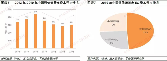 2019年,受益于5G移动通信的推动作用,国内三大通信运营商的资本开支在达到了3031亿元,实现了自2015年以来的首次正向增长。2019年,三大运营商5G资本开支规模约352亿元,建站规模约13万站。