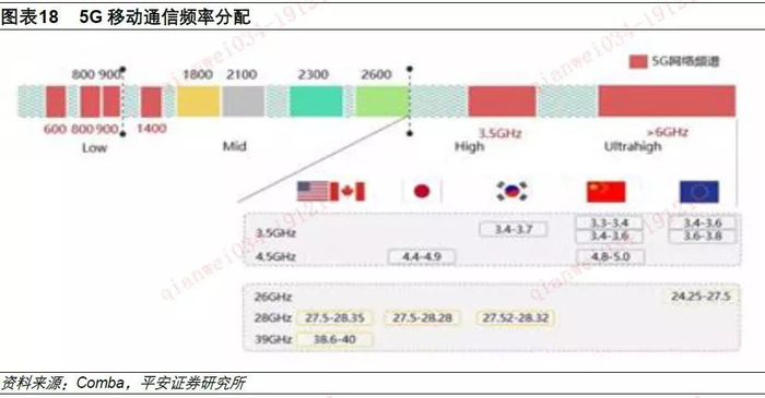 目前,工信部已经给5G移动通信系统新分配了大约500MHz的频段。中国铁塔、中国移动、中国电信、中国联通以及广电各获得了100MHz的频段。与国外运营商相比,中国运营商的频率具有优势,对于5G产业化有较强的推动作用。与此同时,也使得5G基站整体部署规模相比于4G,不会有大幅提升,可以相对减轻运营商资本开支投入压力。