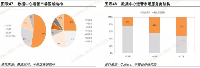 根据Colliers发布的数据显示,2017年第三方运营商在一线城市市场占比已经达到52%;主要原因是电信运营商自获取基础资源、资本开支投入以及建设进度方面的灵活度均落后于第三方运营商,无法满足互联网公司快速部署的需求。