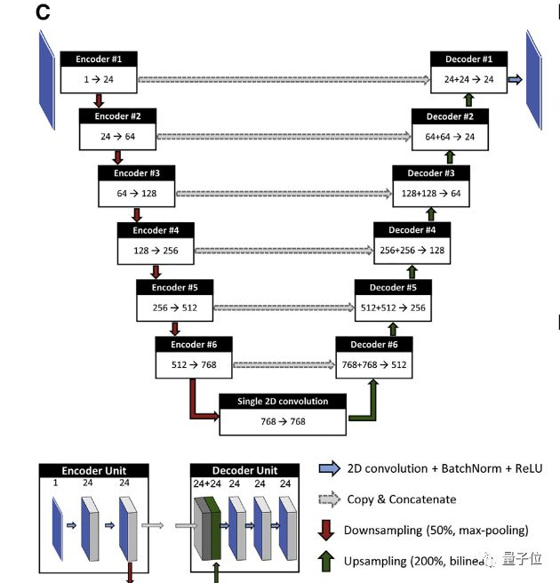 核心架构是CNN。其结构类似于U-net,通过使用可检测出癌症特征的编码单元深堆栈,以及在每个像素级别分割转移灶的解码单元堆栈,该网络可以把转移灶和背景信号区分开。