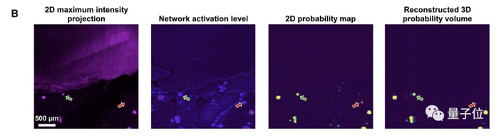 举个例子,在上面这张图中,绿色箭头指向真正的转移灶,红色箭头显示“伪转移灶”。在经过CNN的加工之后,真转移灶被成功检测出来,而“伪转移灶”则被消除了。