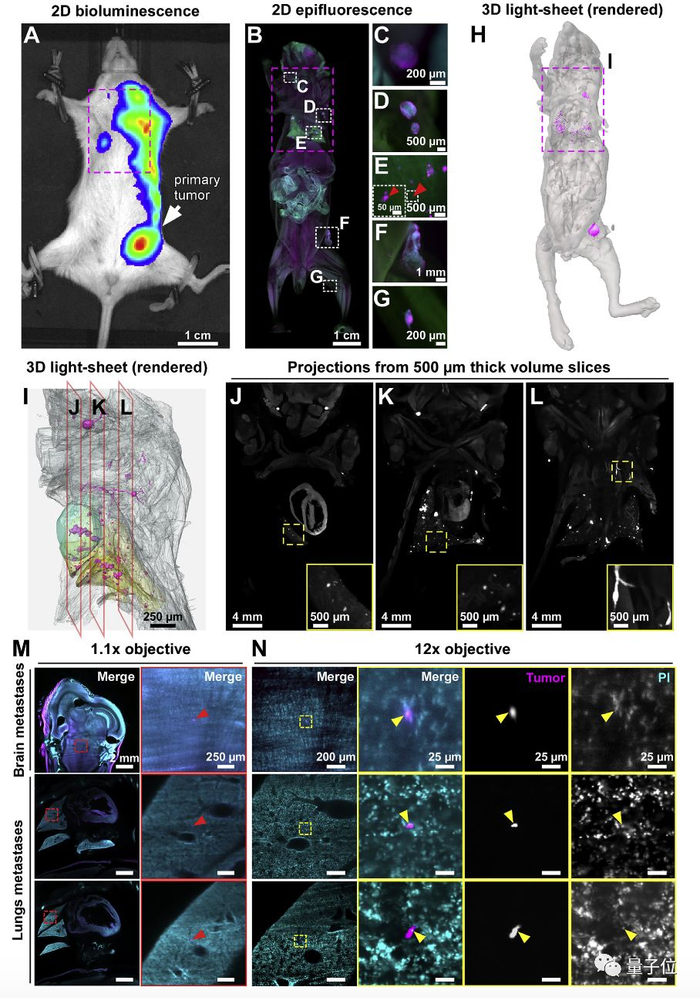 这样一来,研究人员就能揭示所有肿瘤转移位点,甚至能检测到单个癌细胞的最小转移灶。