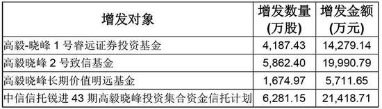 11月25日紫金矿业增发股上市,上述两只产品增发获配数量分别为5862万股和6281万股。此外,邓晓峰管理的另外两只产品,高毅晓峰1号睿远证券投资基金业获配4187.43万股,高毅晓峰长期价值明远基金获配1674.97万股。