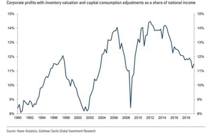 此外,针对下面的图表,高盛表示尽管盈利增长可能在2020年出现反弹,但以后危机时期的标准衡量,未来的增长轨迹将会平缓得多,因为企业利润会根据新的因素进行调整,即劳动力成本的增长速度超过了物价上涨的速度。他们表示企业盈利前景相当黯淡,会引发了对更广泛宏观前景的担忧。
