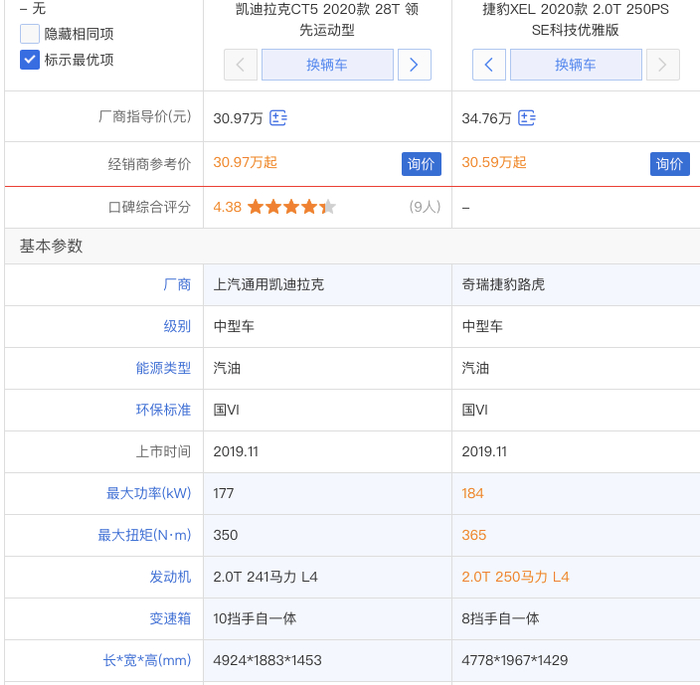 新款捷豹XEL的售价区间为28.98万~38.06万元,性价比方面,CT5也高一些,但同样是在动力方面,新款捷豹XEL最大功率可达184kW,最大扭矩为365N·M,优于CT5。