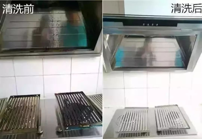 原本满是油烟的油烟机,现在干净得像新的一样!锃亮得能当镜子用!
