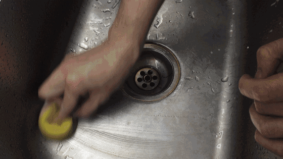 经过汤汁残羹日积月累的折磨,水槽上面总是藏着深浅不一的水渍。