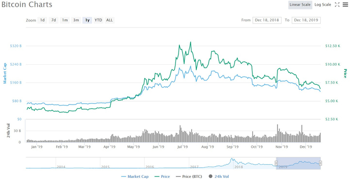 全球币价网站CoinMarketCap数据显示,12月18日,比特币价格一度跌至6587.97美元,创下5月以来最低水平。截至发稿,比特币报价约6600美元。