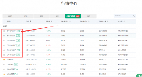 目前在抹茶平台有3种主流币6个交易对杠杆型ETF可供投资者选择,分别是