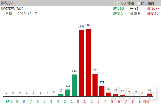 目前个股整体涨幅和大盘同步。12月17日,沪深两市大幅上涨,两市下跌个股不足600家,同时有3000多家公司上涨,涨停股亦达62家。从涨幅分布来看,有超过2300家公司涨幅在2%以内,个股整体涨幅基本与大盘同步。