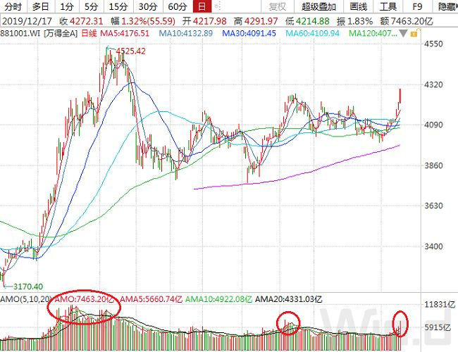 一个关键指标,万得全A总成交逾7400亿元,创三个月新高。