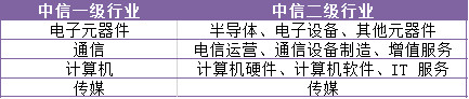 按照中信一级、二级行业分类,TMT行业细分如下: