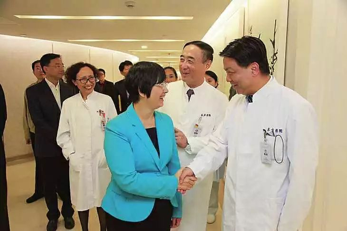 上海交通大学医学院附属第九人民医院副院长、国务院特殊津贴专家、教育部“长江学者”特聘教授。图为李青峰和我国医疗整形外科学学术带头人张涤生院士学术会诊讨论中。