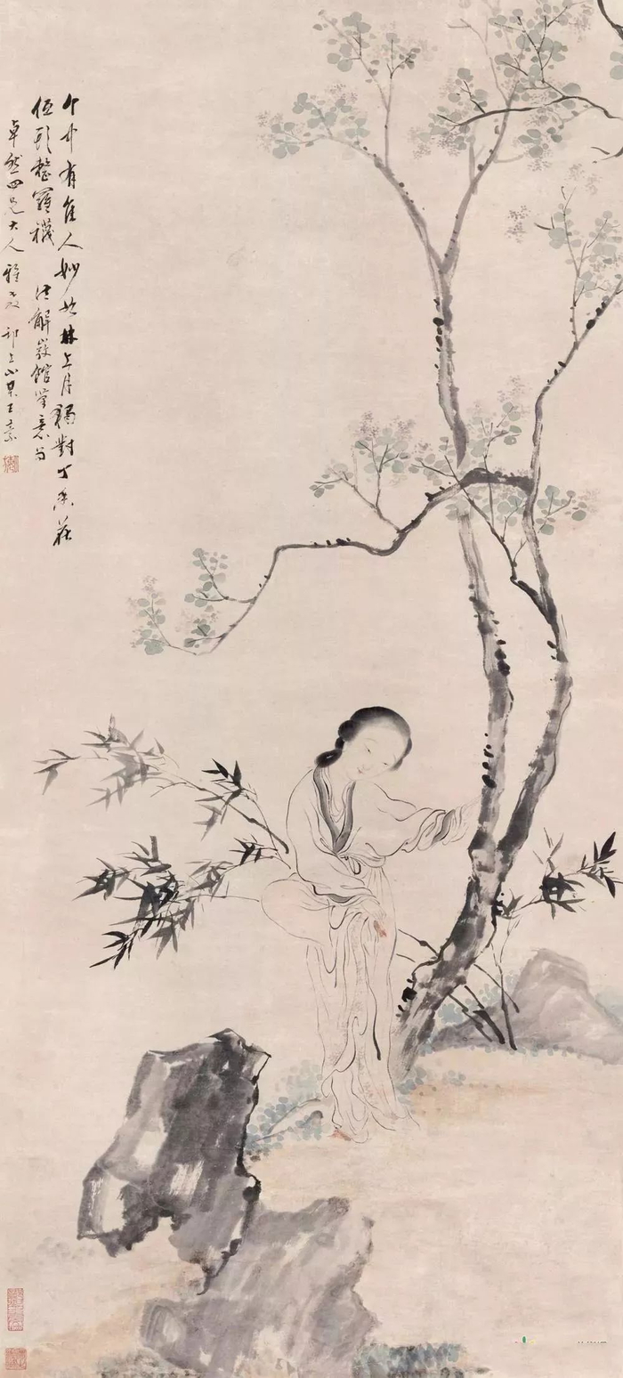 《丁香仕女图》 王素 纸本水墨 131×59cm 年代不详 中国美术馆藏