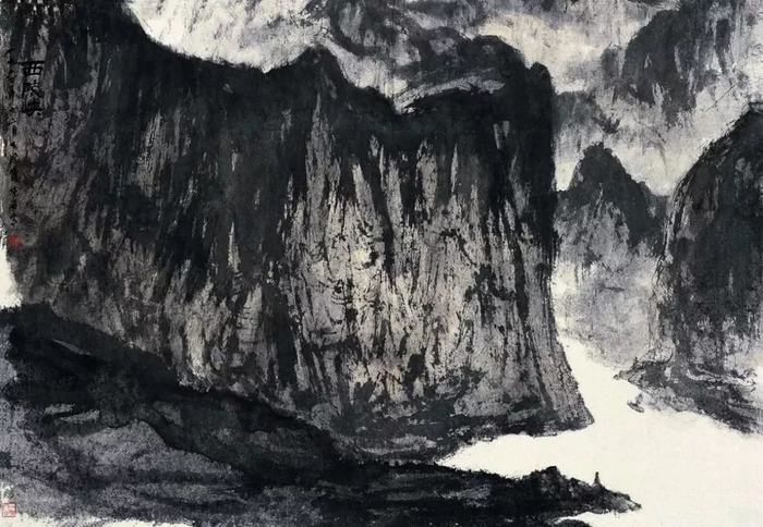 《西陵峡》描绘的是长江三峡中最雄秀奇险的西陵峡,一船只行于平静如镜的江面。
