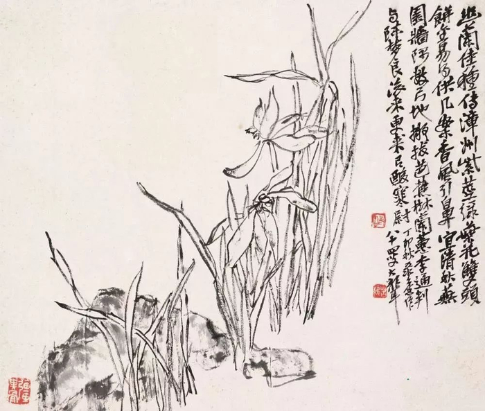 两幅幽兰虽画法不同,但皆描摹出兰花的幽静清雅之态。兰花是四君子(梅兰竹菊)之一,在古诗词中多寓品性高洁、超凡脱俗,深受文人喜爱。