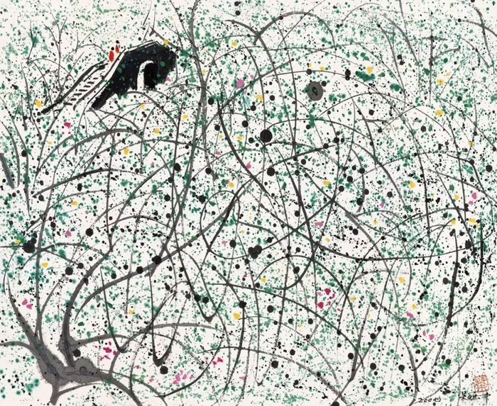 《春风又绿江南岸》 吴冠中 纸本水墨设色中国画 48×59cm 2007 中国美术馆藏