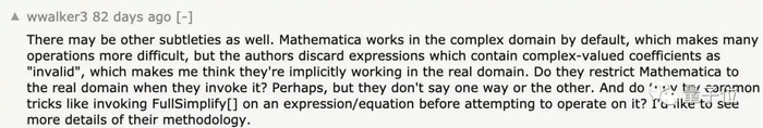 不过,也有网友认为,在与Mathematica的对比上,研究人员的实验设定显得不够严谨。