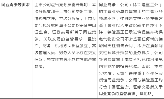 在分拆预案中,中国铁建逐条比对了上述分拆规则,说明符合相关规定。