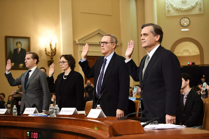 2019年12月4日,美国会众议院司法委员会的首场特朗普弹劾调查听证会,4名法学教授在公开听证会上宣誓