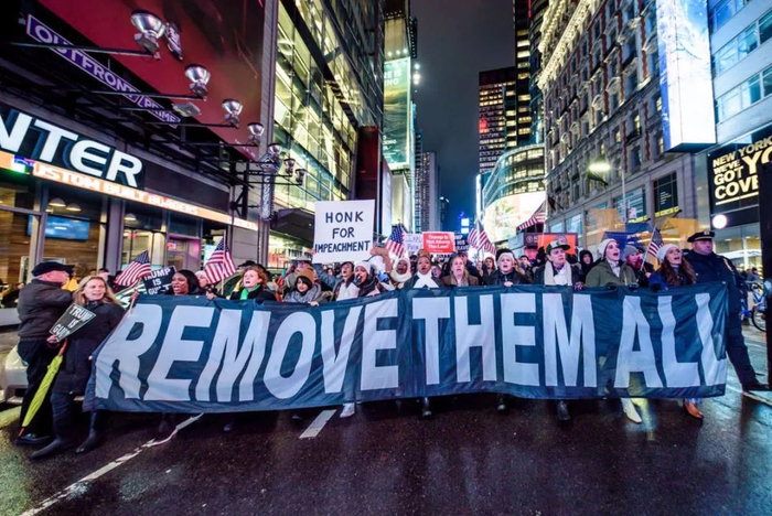 2019年12月17日,纽约市,在弹劾集会上,抗议者游行