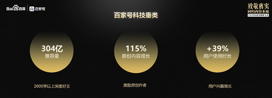 事实上,“在互联网阅读时代,让用户产生5分钟以上的深度阅读并不容易,这些内容的价值也应该被继续放大,所以我们依然选择把更多的流量倾斜向优质的深度内容。” 郭倩倩表示,2020年,百家号将推出10亿鲲鹏专属流量扶持计划,对优质泛科技类内容进行流量倾斜;同时还将帮助优秀的泛科技类内容创作者打造个人IP,并匹配全方位的品牌包装资源,让“金子”内容发光发亮。
