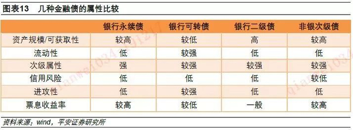 (3)永续债的次级属性对投资人保障极弱,削弱了信用风险低这一优势;同时永续债对投资人本质上仍是固定收益类产品,收益没有进攻属性,流动性方面没有交易价值,需要更高的票息价值才具备吸引力。监管及证券法要求银行永续债不得使投资人产生永续债可以赎回的预期,设置赎回本金必须监管批准这一相对苛刻的条款;延期付息权限也全部在发行人,对投资人的保障极弱,这将极大削弱银行永续债信用风险低这一优势。但对投资人来说,银行永续债本质上仍是固定收益类产品,收益没有进攻性,流动性方面没有交易价值,信用风险低的优势受到次级属性制约,高票息是银行永续债唯一的价值。