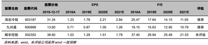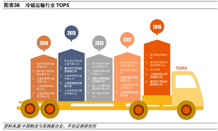 2)冷链物流行业集中度较低,建议关注布局多年,已经成为全国最大冷链运输企业的顺丰控股。