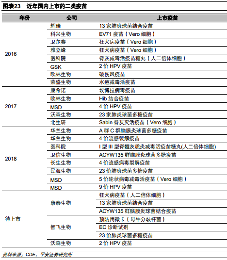二类疫苗审评审批的加速。近年国内一大批二类疫苗上市,且多个重磅品种尚在申报过程中,上市后将带来疫苗行业的加速增长。