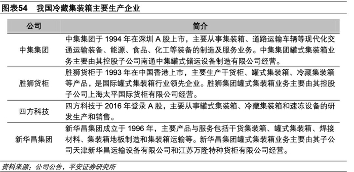 除中集集团外,冷藏集装箱生产商还包括胜狮货柜、中集安瑞科和四方科技。
